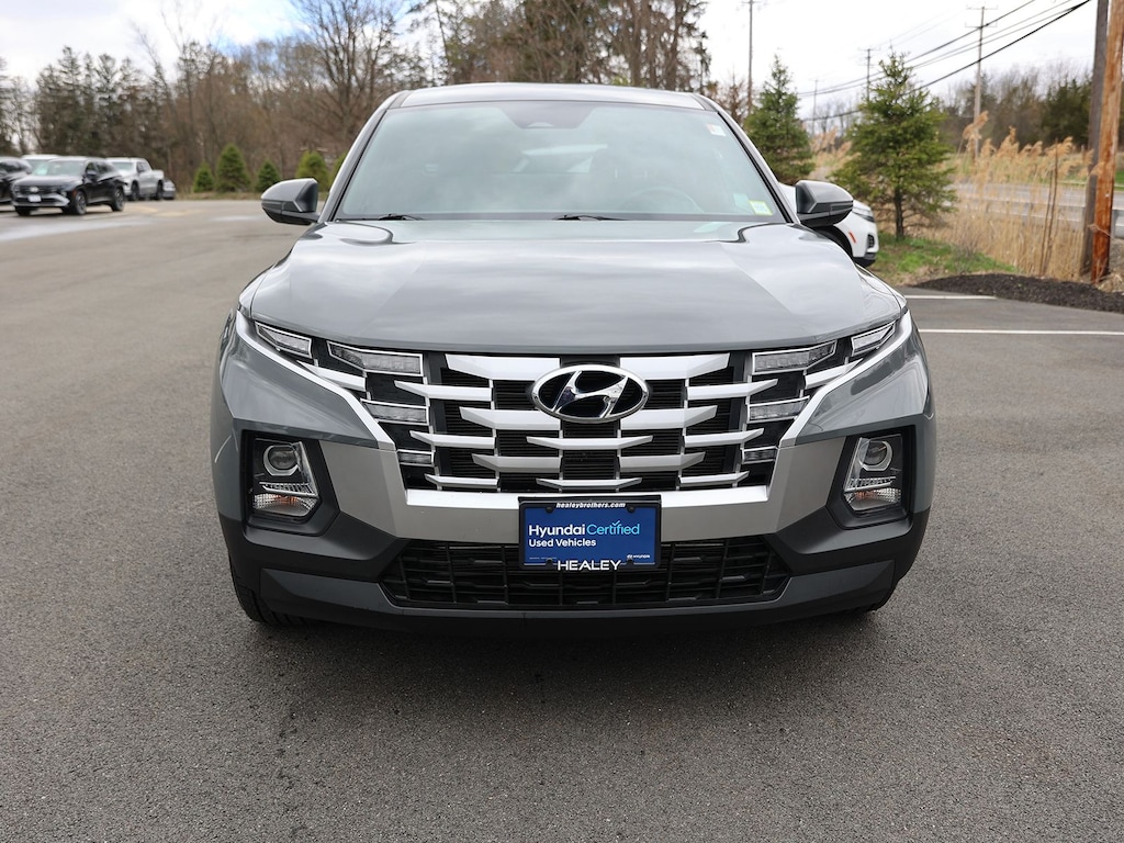 Certified. Hampton Gray 2023 Hyundai Santa Cruz SEL AWD 8-Speed Automatic with SHIFTRONIC 2.5L I4 Fresh Oil Change, 18" x 7.5J Alloy Wheels, Apple CarPlay & Android Auto, Option Group 01, 4-Wheel Disc Brakes, 4.081 Axle Ratio, 6 Speakers, ABS brakes, Air Conditioning, Alloy wheels, AM/FM radio: SiriusXM, Auto High-beam Headlights, Auto-leveling suspension, Brake assist, Bumpers: body-color, Carpeted Floor Mats, Delay-off headlights, Driver door bin, Driver vanity mirror, Dual C-Channel Utility Tracks on Bed Side, Dual front impact airbags, Dual front side impact airbags, Electronic Stability Control, Emergency communication system: Blue Link Connected Car Service (3-year complimentary subscription), Envelop Cargo Net, Exterior Parking Camera Rear, Four wheel independent suspension, Front anti-roll bar, Front Bucket Seats, Front Center Armrest, Front reading lights, Fully automatic headlights, Heated door mirrors, Heated Front Bucket Seats, Heated front seats, Illuminated entry, Low tire pressure warning, Mudguards, Occupant sensing airbag, Outside temperature display, Overhead airbag, Overhead console, Panic alarm, Passenger door bin, Passenger vanity mirror, Power door mirrors, Power driver seat, Power steering, Power windows, Radio data system, Radio: AM/FM/HD Audio System, Rear anti-roll bar, Rear step bumper, Rear window defroster, Remote keyless entry, Security system, Speed control, Speed-sensing steering, Split folding rear seat, Spoiler, Stain & Odor Resistant Cloth Seat Trim, Steering wheel mounted audio controls, Tachometer, Telescoping steering wheel, Tilt steering wheel, Traction control, Trip computer, Turn signal indicator mirrors, Variably intermittent wipers, Wheel Locks, 18" x 7.5J Alloy Wheels, Apple CarPlay & Android Auto, Option Group 01.