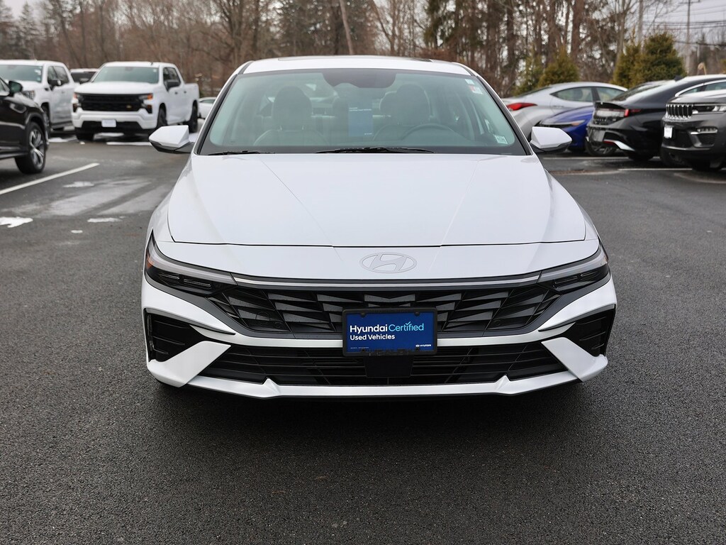 Certified. Serenity White 2025 Hyundai Elantra Limited FWD CVT I4 Fresh Oil Change, 17" x 7.0J Alloy Wheels, 4-Wheel Disc Brakes, 8 Speakers, ABS brakes, Air Conditioning, Alloy Door Sills, Alloy wheels, AM/FM radio: SiriusXM, Apple CarPlay & Android Auto, Auto High-beam Headlights, Auto-dimming Rear-View mirror, Automatic temperature control, Brake assist, Bumpers: body-color, Cargo Net, Carpeted Floor Mats, Delay-off headlights, Driver door bin, Driver vanity mirror, Dual front impact airbags, Dual front side impact airbags, Electronic Stability Control, Emergency communication system: Bluelink+, Front anti-roll bar, Front Bucket Seats, Front Center Armrest, Front dual zone A/C, Front reading lights, Front wheel independent suspension, Fully automatic headlights, H-Tex Leatherette Seats, Heated door mirrors, Heated Front Bucket Seats, Heated front seats, Illuminated entry, Leather steering wheel, Low tire pressure warning, Navigation System, Occupant sensing airbag, Option Group 01, Outside temperature display, Overhead airbag, Overhead console, Panic alarm, Passenger door bin, Passenger vanity mirror, Power door mirrors, Power driver seat, Power moonroof, Power steering, Power windows, Radio: AM/FM/HD/SiriusXM Display Audio, Rear Bumper Applique, Rear seat center armrest, Rear side impact airbag, Rear window defroster, Remote keyless entry, Security system, Speed control, Speed-sensing steering, Split folding rear seat, Steering wheel mounted audio controls, Tachometer, Telescoping steering wheel, Tilt steering wheel, Traction control, Trip computer, Turn signal indicator mirrors, Variably intermittent wipers.