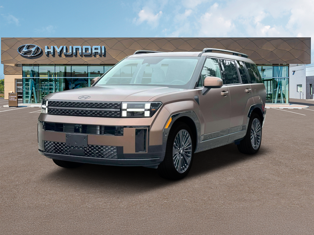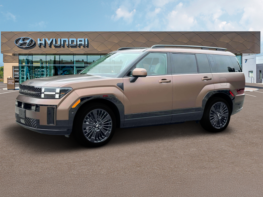 Earthy Brass Matte 2025 Hyundai Santa Fe Hybrid Calligraphy AWD 6-Speed Automatic with Shiftronic I4 Fresh Oil Change, 12 Speakers, 3rd row seats: bench, 4-Wheel Disc Brakes, ABS brakes, Air Conditioning, All Season Fitted Liners, Alloy wheels, AM/FM radio: SiriusXM, Apple CarPlay & Android Auto, Auto High-beam Headlights, Auto-dimming Rear-View mirror, Automatic temperature control, Brake assist, Bumpers: body-color, Cargo Cover, Cargo Net, Cargo Tray, Carpeted Floor Mats, Delay-off headlights, Driver door bin, Driver vanity mirror, Dual front impact airbags, Dual front side impact airbags, Electronic Stability Control, Emergency communication system, Exterior Parking Camera Rear, First Aid Kit, Four wheel independent suspension, Front anti-roll bar, Front Bucket Seats, Front Center Armrest, Front dual zone A/C, Front reading lights, Fully automatic headlights, Garage door transmitter: HomeLink, Heads-Up Display, Heated & Ventilated Front Bucket Seats, Heated door mirrors, Heated front seats, Heated rear seats, Heated steering wheel, Illuminated entry, Knee airbag, Leather steering wheel, Low tire pressure warning, Memory seat, Navigation System, Occupant sensing airbag, Option Group 01, Outside temperature display, Overhead airbag, Overhead console, Panic alarm, Passenger door bin, Passenger vanity mirror, Power door mirrors, Power driver seat, Power Liftgate, Power moonroof, Power passenger seat, Power steering, Power windows, Premium Nappa Leather Seat Trim, Radio: AM/FM/HD Bose Premium Audio System, Rain sensing wipers, Rear anti-roll bar, Rear side impact airbag, Rear window defroster, Rear window wiper, Remote keyless entry, Security system, Speed control, Speed-sensing steering, Split folding rear seat, Spoiler, Steering wheel mounted audio controls, Tachometer, Telescoping steering wheel, Tilt steering wheel, Traction control, Trip computer, Turn signal indicator mirrors, Variably intermittent wipers, Ventilated front seats, Wheels: 20" x 8.5J Unique Dark Finish Alloy.