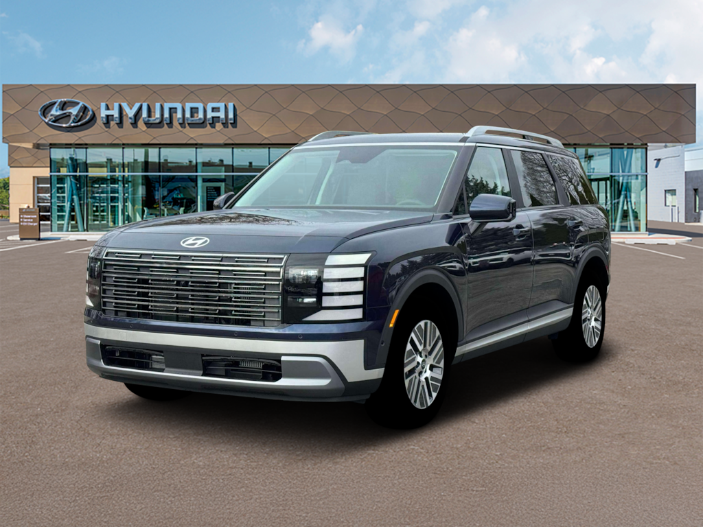 Classy Blue Pearl 2026 Hyundai Palisade Hybrid SEL Premium 7 Passenger AWD 6-Speed Automatic 2.5L Turbocharged GDI 4-Cylinder Hybrid Fresh Oil Change, 100W Charging Cable, 3rd row seats: split-bench, 4-Wheel Disc Brakes, 8 Speakers, ABS brakes, Air Conditioning, Alloy wheels, AM/FM radio: SiriusXM, Apple CarPlay & Android Auto, Audio memory, Auto High-beam Headlights, Auto-dimming door mirrors, Auto-dimming Rear-View mirror, Auto-leveling suspension, Automatic temperature control, Brake assist, Bumpers: body-color, Cargo Cover, Cargo Mat, Up Seatback, Cargo Net, Carpeted Floor Mats, Compass, Delay-off headlights, Driver door bin, Driver vanity mirror, Dual front impact airbags, Dual front side impact airbags, Electronic Stability Control, Emergency communication system: None, Exterior Parking Camera Rear, First Aid Kit, Four wheel independent suspension, Front anti-roll bar, Front Bucket Seats, Front Center Armrest, Front dual zone A/C, Front reading lights, Fully automatic headlights, Garage door transmitter: HomeLink, H-Tex Leatherette Seat Trim, Heated and Ventilated Front Bucket Seats, Heated door mirrors, Heated front seats, Heated rear seats, Heated steering wheel, HVAC memory, Illuminated entry, Knee airbag, Leather steering wheel, Low tire pressure warning, Memory seat, Navigation System, Occupant sensing airbag, Option Group 01, Outside temperature display, Overhead airbag, Overhead console, Panic alarm, Passenger door bin, Passenger vanity mirror, Power door mirrors, Power driver seat, Power Liftgate, Power moonroof, Power passenger seat, Power steering, Power windows, Radio data system, Radio: Infotainment Navigation System, Rear air conditioning, Rear anti-roll bar, Rear audio controls, Rear Bumper Applique, Rear reading lights, Rear side impact airbag, Rear window defroster, Rear window wiper, Reclining 3rd row seat, Remote keyless entry, Security system, Speed control, Split folding rear seat, Spoiler, Steering wheel mounted audio controls, Tachometer, Telescoping steering wheel, Tilt steering wheel, Traction control, Trip computer, Turn signal indicator mirrors, Variably intermittent wipers, Ventilated front seats, Ventilated rear seats, Wheels: 18" x 8.0J Alloy.