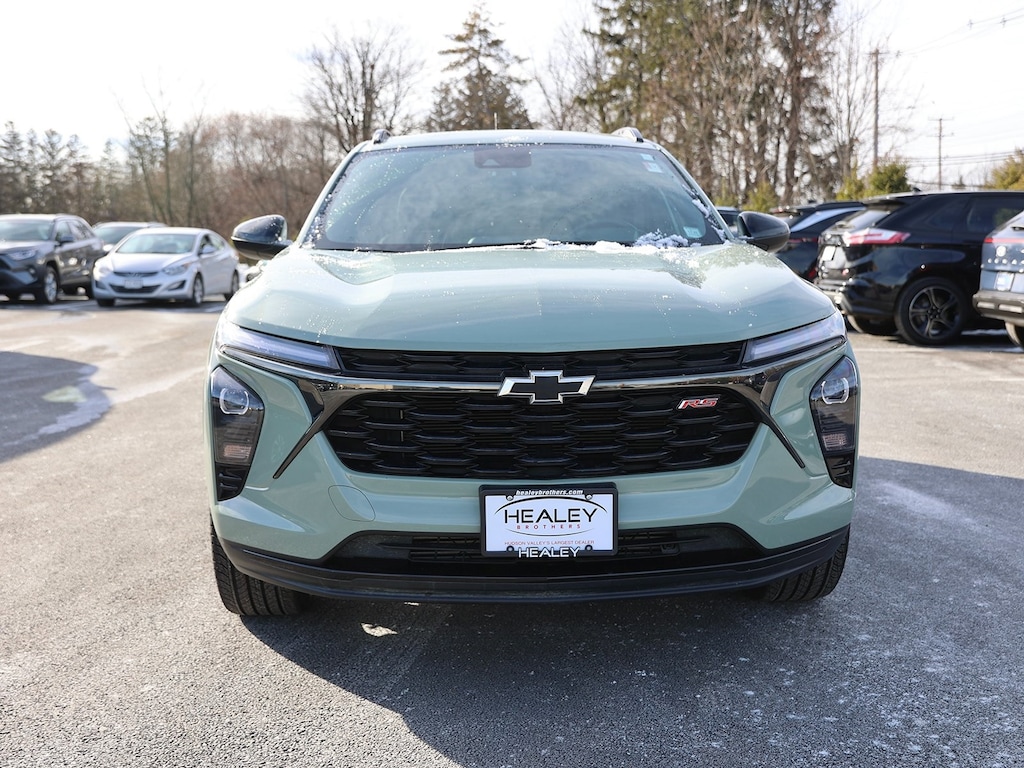 Cacti Green 2024 Chevrolet Trax 2RS FWD 6-Speed Automatic 1.2L Ecotec Turbo DOHC DI w/VVT Fresh Oil Change, 2-Way Adjustable Front Head Restraints, 3.50 Final Drive Axle Ratio, 4-Way Manual Front Passenger Seat Adjuster, 4-Wheel Disc Brakes, 6 Speakers, 6-Speaker Audio System Feature, 6-Way Manual Driver Seat Adjuster, ABS brakes, Air Conditioning, Alloy wheels, AM/FM radio: SiriusXM, Auto High-beam Headlights, Automatic temperature control, Brake assist, Bumpers: body-color, Compass, Delay-off headlights, Driver door bin, Driver vanity mirror, Dual front impact airbags, Dual front side impact airbags, Electronic Stability Control, Emergency communication system: OnStar and Chevrolet connected services capable, Evotex Seat Trim, Exterior Parking Camera Rear, Front anti-roll bar, Front Bucket Seats, Front Center Armrest, Front reading lights, Front wheel independent suspension, Fully automatic headlights, Heated door mirrors, Heated Driver & Front Passenger Seats, Heated front seats, Heated steering wheel, Illuminated entry, License Plate Front Mounting Package, Low tire pressure warning, Occupant sensing airbag, Outside temperature display, Overhead airbag, Overhead console, Panic alarm, Passenger door bin, Passenger vanity mirror, Power door mirrors, Power steering, Power windows, Preferred Equipment Group 2RS, Premium audio system: Chevrolet Infotainment 3, Radio data system, Radio: Audio System w/AM/FM, Rear window defroster, Rear window wiper, Remote keyless entry, Security system, SiriusXM, Speed control, Split folding rear seat, Spoiler, Sport steering wheel, Steering wheel mounted audio controls, Tachometer, Telescoping steering wheel, Tilt steering wheel, Traction control, Trip computer, Variably intermittent wipers, Wheels: 19" Black-Painted Machined Aluminum.