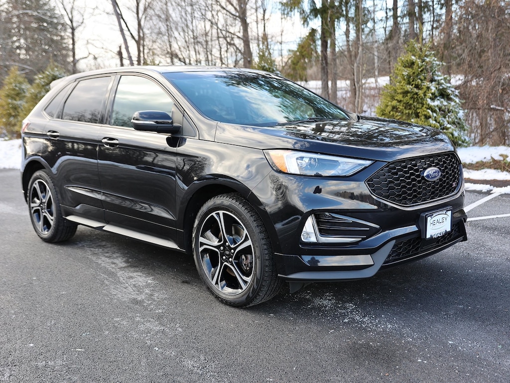 Black Metallic 2019 Ford Edge ST AWD 8-Speed Automatic 2.7L V6 EcoBoost Fresh Oil Change, 110V/150W AC Power Outlet, 12 Speakers, 4-Wheel Disc Brakes, ABS brakes, Adaptive Cruise Control w/Stop & Go, Air Conditioning, Alloy wheels, AM/FM radio: SiriusXM, AppLink/Apple CarPlay and Android Auto, Auto High-beam Headlights, Auto tilt-away steering wheel, Auto-dimming Rear-View mirror, Automatic temperature control, Axle Ratio: TBA, Brake assist, Bumpers: body-color, CD player, Cold Weather Package, Compass, Convenience Package, Delay-off headlights, Driver door bin, Driver vanity mirror, Dual front impact airbags, Dual front side impact airbags, Electronic Stability Control, Emergency communication system: SYNC 3 911 Assist, Equipment Group 400A, Evasive Steering Assist, Foot-Activated Hands-Free Liftgate, Ford Co-Pilot360 Assist+, Four wheel independent suspension, Front & Rear Floor Liners, Front anti-roll bar, Front Bucket Seats, Front Center Armrest w/Storage, Front dual zone A/C, Front fog lights, Front License Plate Bracket, Front reading lights, Fully automatic headlights, Heated door mirrors, Heated front seats, Heated Steering Wheel, Illuminated entry, Knee airbag, Lane Centering, Leather-Trimmed Heated ST Bolstered Bucket Seats, Low tire pressure warning, Memory seat, Occupant sensing airbag, Outside temperature display, Overhead airbag, Overhead console, Panic alarm, Passenger door bin, Passenger vanity mirror, Perimeter Alarm, Power door mirrors, Power driver seat, Power Liftgate, Power passenger seat, Power steering, Power windows, Radio: B&O Sound System by Bang & Olufsen, Rain sensing wipers, Rear anti-roll bar, Rear Parking Sensors, Rear reading lights, Rear seat center armrest, Rear window defroster, Rear window wiper, Remote keyless entry, Remote Start System, Roof rack: rails only, SiriusXM Radio, SiriusXM Traffic & Travel Link, Speed control, Speed-Sensitive Wipers, Split folding rear seat, Spoiler, Steering wheel memory, Steering wheel mounted audio controls, SYNC 3 Communications & Entertainment System, Tachometer, Telescoping steering wheel, Tilt steering wheel, Traction control, Trip computer, Turn signal indicator mirrors, Universal Garage Door Opener (UGDO), Variably intermittent wipers, Voice-Activated Touchscreen Navigation System, Wheels: 20" Bright-Machined Aluminum, Windshield Wiper De-Icer, Wireless Charging Pad.