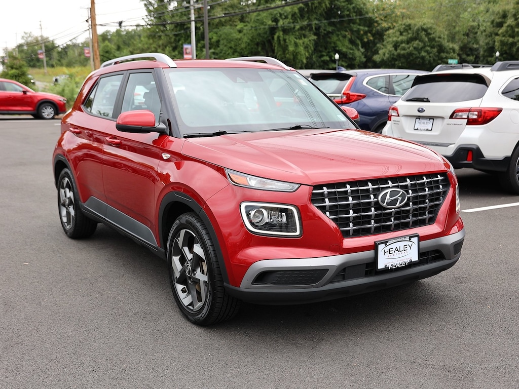 Scarlet Red Pearl 2022 Hyundai Venue Limited FWD CVT I4 Fresh Oil Change, 4-Wheel Disc Brakes, 6 Speakers, 6.483 Axle Ratio, 6.5J x 17" Alloy Wheels, ABS brakes, Air Conditioning, Alloy wheels, AM/FM radio: SiriusXM, Apple CarPlay & Android Auto, Auto High-beam Headlights, Automatic temperature control, Brake assist, Bumpers: body-color, Cargo Tray, Carpeted Floor Mats, Cloth Seat Trim, Delay-off headlights, Driver door bin, Driver vanity mirror, Dual front impact airbags, Dual front side impact airbags, Electronic Stability Control, Emergency communication system, First Aid Kit, Front anti-roll bar, Front Bucket Seats, Front Center Armrest, Front reading lights, Front wheel independent suspension, Fully automatic headlights, Heated door mirrors, Heated Front Bucket Seats, Heated front seats, Illuminated entry, Leather Shift Knob, Leather steering wheel, Low tire pressure warning, Navigation System, Occupant sensing airbag, Option Group 01, Outside temperature display, Overhead airbag, Overhead console, Panic alarm, Passenger door bin, Passenger vanity mirror, Power door mirrors, Power steering, Power windows, Radio: AM/FM/HD/SiriusXM Display Audio, Rear Bumper Applique, Rear Seat Cup Holder, Rear window defroster, Rear window wiper, Remote keyless entry, Roof rack: rails only, Security system, Speed control, Speed-sensing steering, Split folding rear seat, Spoiler, Steering wheel mounted audio controls, Tachometer, Telescoping steering wheel, Tilt steering wheel, Traction control, Trip computer, Variably intermittent wipers, Wheel Locks.