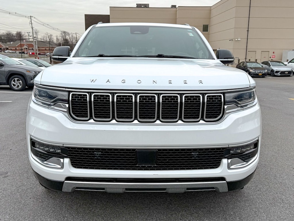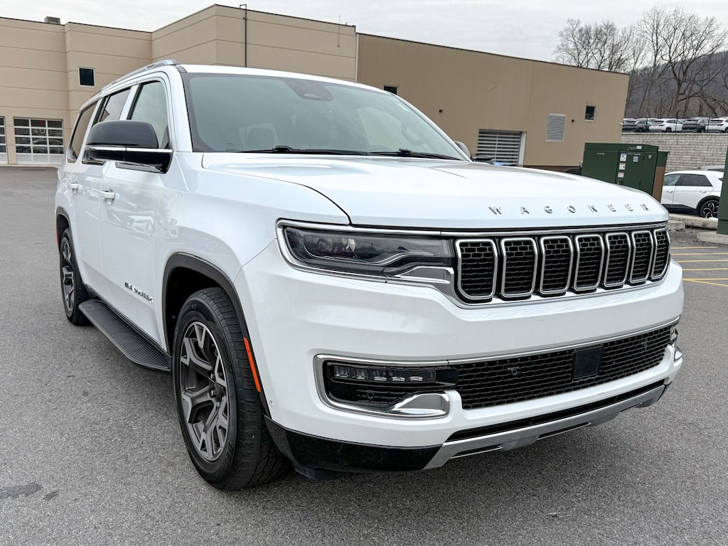 Bright White Clearcoat 2023 Jeep Wagoneer Series III 4WD 8-Speed Automatic 3.0L I6 Fresh Oil Change, 60/40 Power Recline 3rd Row Seat, Heads-Up Display, Heated front seats, Navigation System, Preferred Equipment Group, Quadra-Lift Air Suspension, Quick Order Package 25N, Semi Active Damping, 10 Speakers, 20" x 9.0" Aluminum Wheels, 3.55 Rear Axle Ratio, 3rd row seats: bench, 4-Wheel Disc Brakes, ABS brakes, Adjustable pedals, Air Conditioning, Alloy wheels, AM/FM radio: SiriusXM with 360L, Anti-whiplash front head restraints, Audio memory, Auto High-beam Headlights, Auto-dimming door mirrors, Auto-dimming Rear-View mirror, Auto-leveling suspension, Automatic temperature control, Brake assist, Bumpers: body-color, Compass, Delay-off headlights, Driver door bin, Driver vanity mirror, Driver's Seat Mounted Armrest, Dual front impact airbags, Dual front side impact airbags, Electronic Stability Control, Emergency communication system: Automatic SOS Call, Exterior Parking Camera Rear, Four wheel independent suspension, Front anti-roll bar, Front Bucket Seats, Front Center Armrest w/Storage, Front dual zone A/C, Front fog lights, Front reading lights, Fully automatic headlights, Garage door transmitter, Genuine wood console insert, Genuine wood dashboard insert, Genuine wood door panel insert, Heated door mirrors, Heated rear seats, Heated steering wheel, Illuminated entry, Knee airbag, Leather Trimmed Bucket Seats, Low tire pressure warning, Memory seat, Normal Duty Suspension, Occupant sensing airbag, Outside temperature display, Overhead airbag, Overhead console, Panic alarm, Passenger door bin, Passenger seat mounted armrest, Passenger vanity mirror, Pedal memory, Power adjustable front head restraints, Power door mirrors, Power driver seat, Power Liftgate, Power passenger seat, Power steering, Power windows, Radio data system, Radio: Uconnect 5 Nav w/10.1" Display, Rain sensing wipers, Rear air conditioning, Rear anti-roll bar, Rear dual zone A/C, Rear reading lights, Rear seat center armrest, Rear window defroster, Rear window wiper, Reclining 3rd row seat, Remote keyless entry, Security system, Speed control, Speed-sensing steering, Speed-Sensitive Wipers, Split folding rear seat, Steering wheel memory, Steering wheel mounted audio controls, Tachometer, Telescoping steering wheel, Tilt steering wheel, Traction control, Trip computer, Turn signal indicator mirrors, Variably intermittent wipers, Ventilated front seats, Voltmeter, 60/40 Power Recline 3rd Row Seat, Heads-Up Display, Heated front seats, Navigation System, Preferred Equipment Group, Quadra-Lift Air Suspension, Quick Order Package 25N, Semi Active Damping.