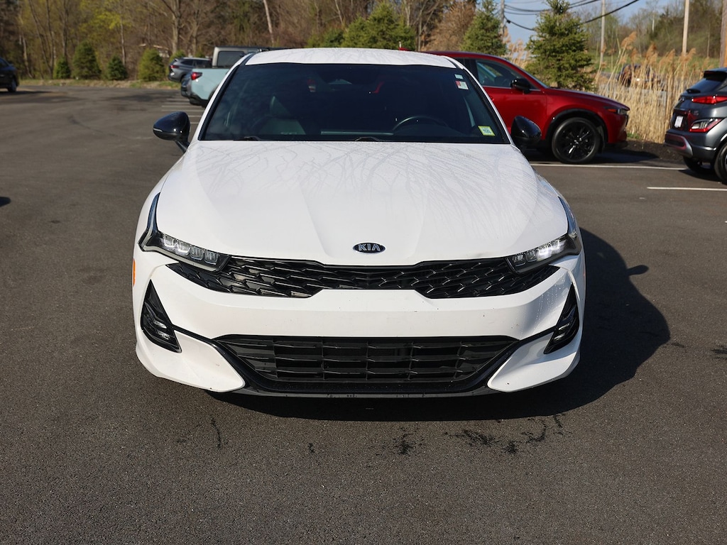 Glacial White Pearl 2021 Kia K5 GT-Line FWD 8-Speed Automatic 1.6L I4 DGI Fresh Oil Change, 4-Wheel Disc Brakes, 6 Speakers, ABS brakes, Air Conditioning, Alloy wheels, AM/FM radio, Apple CarPlay & Android Auto, Auto High-beam Headlights, Automatic temperature control, Brake assist, Bumpers: body-color, Carpeted Floor Mats, Cloth/Leatherette Seat Trim, Delay-off headlights, Driver door bin, Driver vanity mirror, Dual front impact airbags, Dual front side impact airbags, Electronic Stability Control, Four wheel independent suspension, Front anti-roll bar, Front Bucket Seats, Front Center Armrest, Front dual zone A/C, Front fog lights, Front reading lights, Fully automatic headlights, Heated door mirrors, Illuminated entry, Knee airbag, Low tire pressure warning, Occupant sensing airbag, Outside temperature display, Overhead airbag, Overhead console, Panic alarm, Passenger door bin, Passenger vanity mirror, Power door mirrors, Power driver seat, Power steering, Power windows, Radio data system, Radio: AM/FM/MP3 Audio System, Rear anti-roll bar, Rear seat center armrest, Rear side impact airbag, Rear window defroster, Remote keyless entry, Security system, Speed control, Speed-sensing steering, Split folding rear seat, Spoiler, Sport steering wheel, Steering wheel mounted audio controls, Tachometer, Telescoping steering wheel, Tilt steering wheel, Traction control, Trip computer, Turn signal indicator mirrors, Variably intermittent wipers, Wheels: 7.5J x 18" Graphite Machined Finish Alloy.