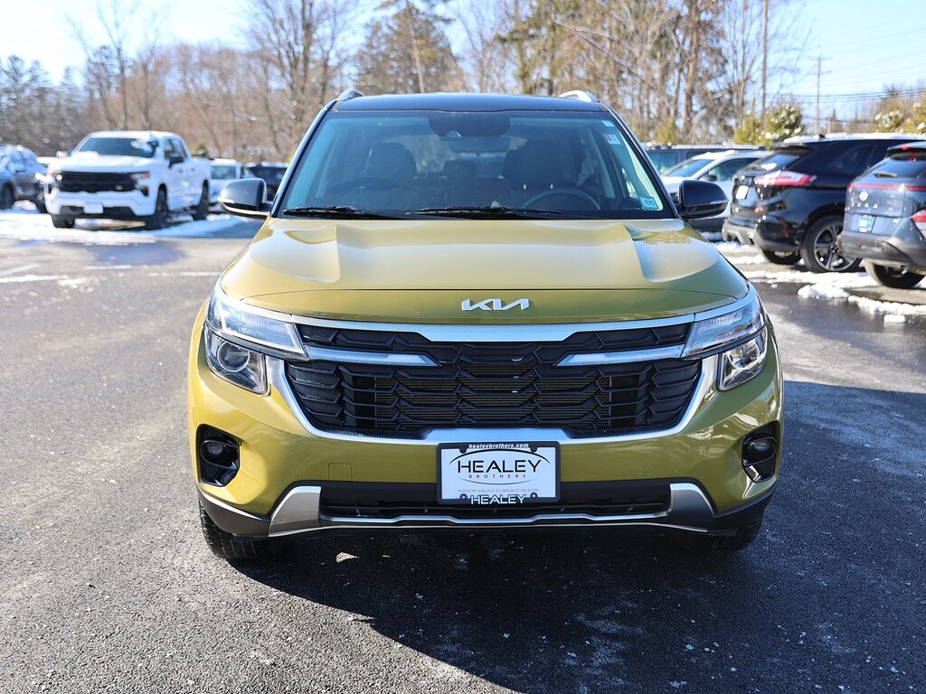 Valais Green/Black Roof 2024 Kia Seltos S AWD CVT 2.0L I4 MPI Fresh Oil Change, 4-Wheel Disc Brakes, 6 Speakers, 6.052 Axle Ratio, ABS brakes, Air Conditioning, Alloy wheels, AM/FM radio: SiriusXM, Apple CarPlay & Android Auto, Auto High-beam Headlights, Automatic temperature control, Brake assist, Bumpers: body-color, Carpet Floor Mats, Cloth & Sofino Premium Leatherette Seat Trim, Delay-off headlights, Driver door bin, Driver vanity mirror, Dual front impact airbags, Dual front side impact airbags, Electronic Stability Control, Emergency communication system: 911 Connect, Exterior Parking Camera Rear, Four wheel independent suspension, Front anti-roll bar, Front Bucket Seats, Front Center Armrest, Front fog lights, Front reading lights, Fully automatic headlights, Glossy Black Door Garnish, Glossy Black Door Garnish Package, Heated door mirrors, Heated Front Bucket Seats, Heated front seats, Illuminated entry, Leather Shift Knob, Leather steering wheel, Low tire pressure warning, Navigation System, Occupant sensing airbag, Outside temperature display, Overhead airbag, Overhead console, Panic alarm, Passenger door bin, Passenger vanity mirror, Power door mirrors, Power steering, Power windows, Radio: AM/FM/HD/Satellite Display System w/Navigation, Rear seat center armrest, Rear window defroster, Rear window wiper, Remote keyless entry, Reversible Cargo Mat/Tray, Security system, Speed control, Speed-sensing steering, Split folding rear seat, Spoiler, Steering wheel mounted audio controls, Tachometer, Telescoping steering wheel, Tilt steering wheel, Traction control, Trip computer, Turn signal indicator mirrors, Variably intermittent wipers, Wheels: 17" Alloy w/Dark Gray Finish.